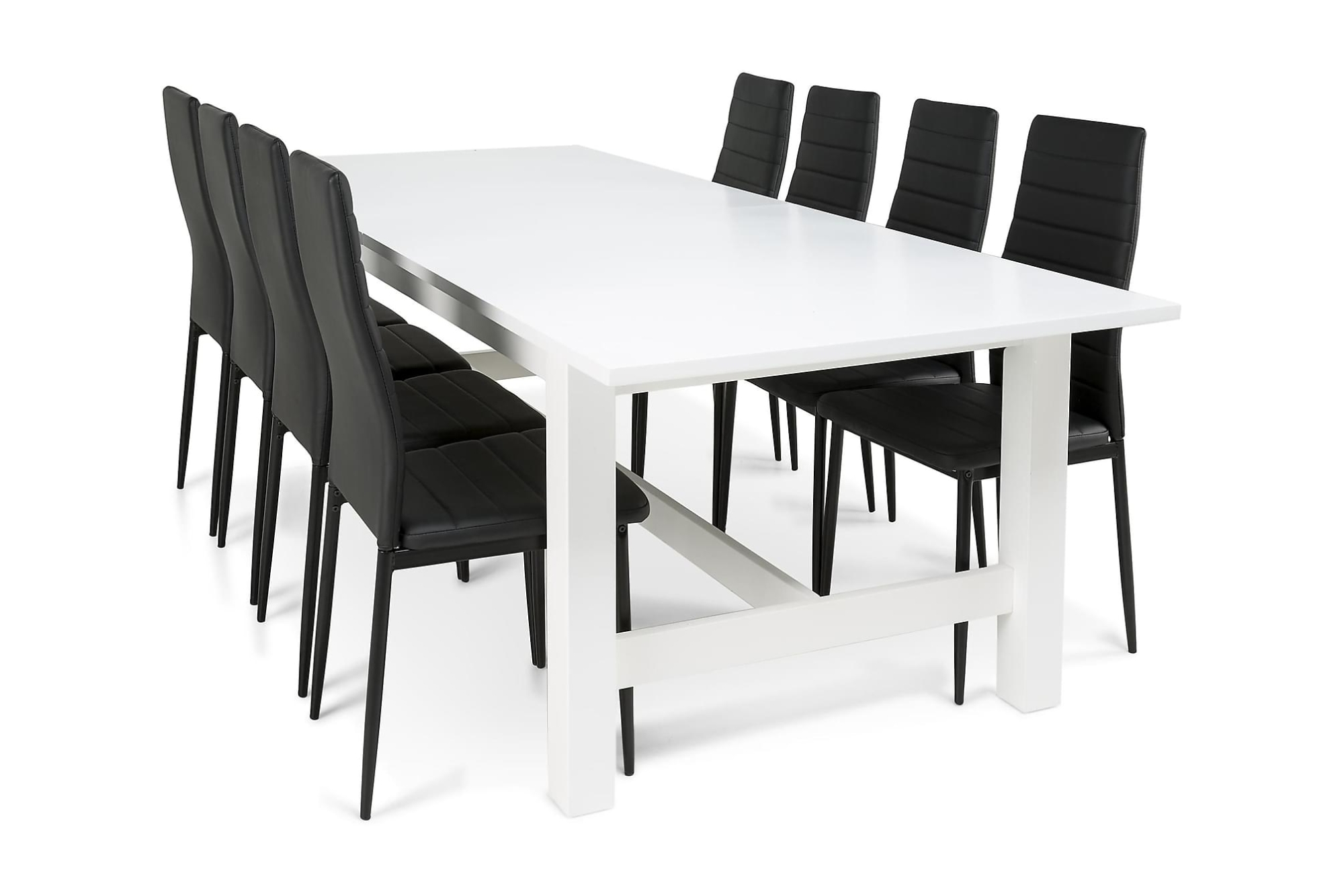 Altea spisebord er et aflangt, hvidt og klassisk spisebord. Det robuste og massive spisebord har et rustikt design og en hvidlakeret overflade, som er let at tørre af og holde ren. Bordet leveres med en 60 cm tillægsplade, som hurtigt og let giver plads t
