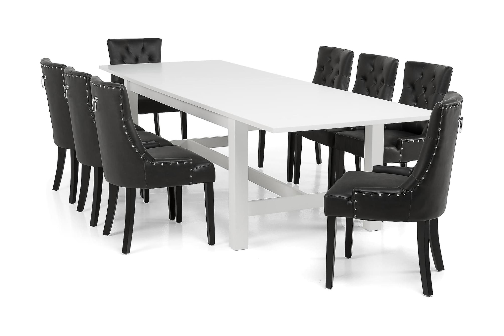 Altea Spisebordssæt M. 8 Tuva Stole (Sort Kunstlæder), Hvid