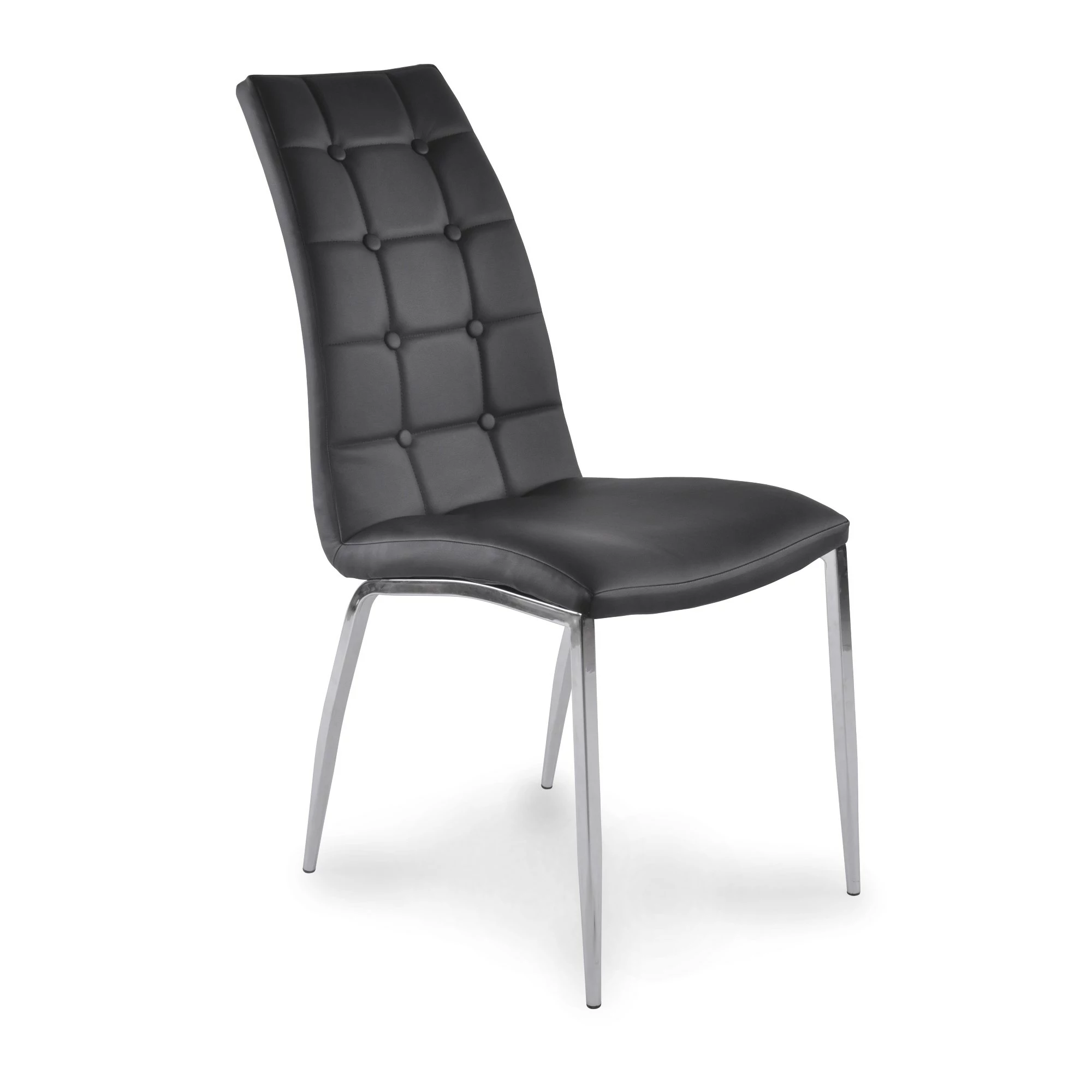 Angelina spisestuestol er en flot højrygget stol i sort med knapper i ryggen og med krom stel. Stolen vil passe ind i stort set alle hjem uanset stil og farvevalg. Stolen måler 96,5 cm i højden, 66,5 cm i dybden og har en længde på 42,5 cm. For at se udva