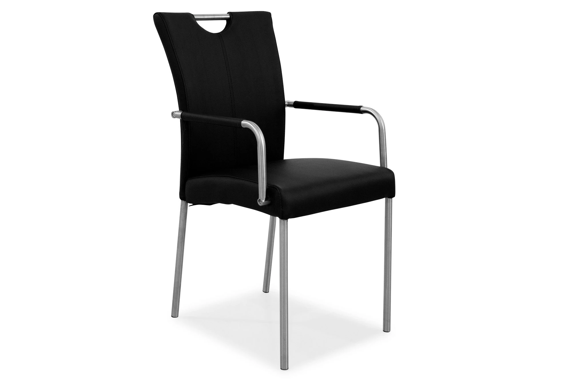 Asti spisestuestol er en flot stol i sort bonded læder med armlæn og praktisk håndtag i ryggen. Samtidig er stolen monteret med rustfri stålstel. Stolen måler 95,5 cm i højden, 57,5 cm i dybden og er 46,5 cm lang. Asti fås i flere modeller. Se flere her.