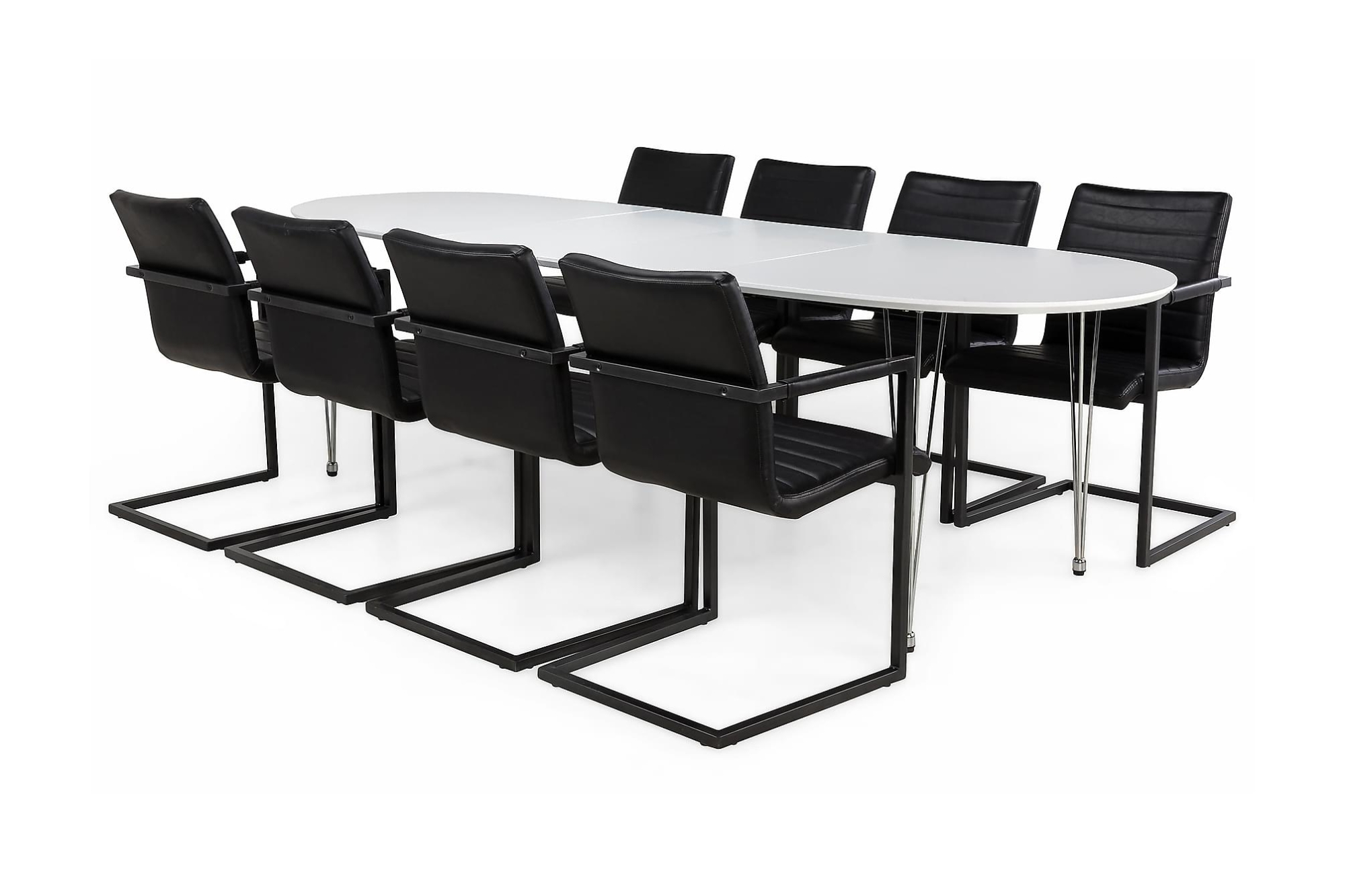 Caddy er et meget populært spisebordssæt som forgylder livets store og små øjeblikke. Spisebordet har en hvid mat lakeret bordplade med forkromede ben i stål, som giver et lyst og velkommende indtryk. Caddy spisebordssæt leveres med 2 praktiske tillægspla