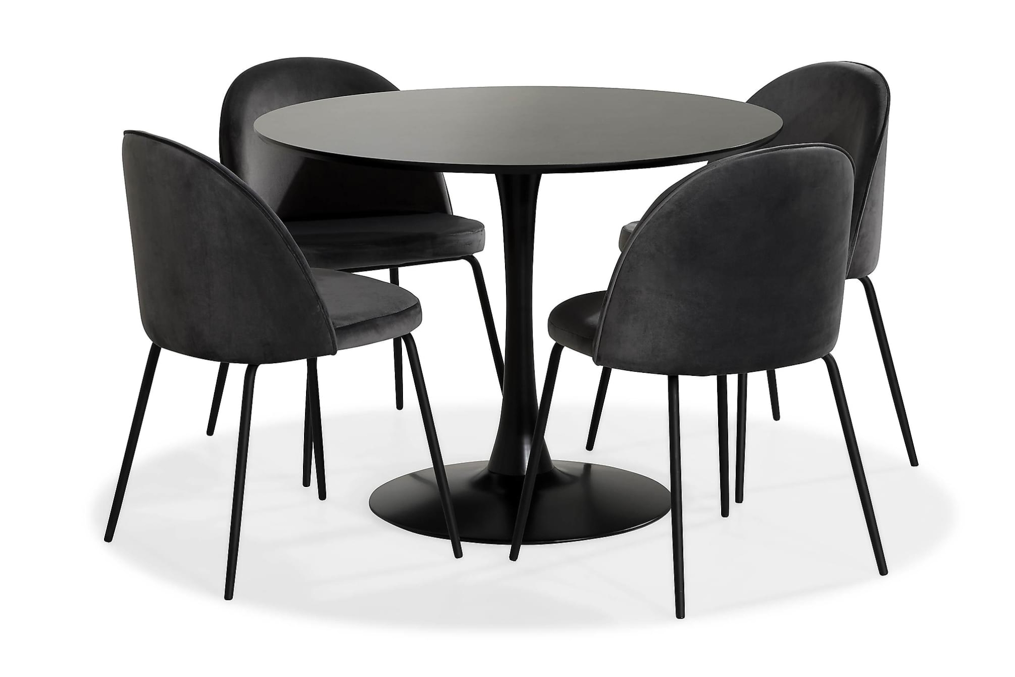 Caitly Spisebordssæt M. 4 Felipe Stole, Grå Velour
