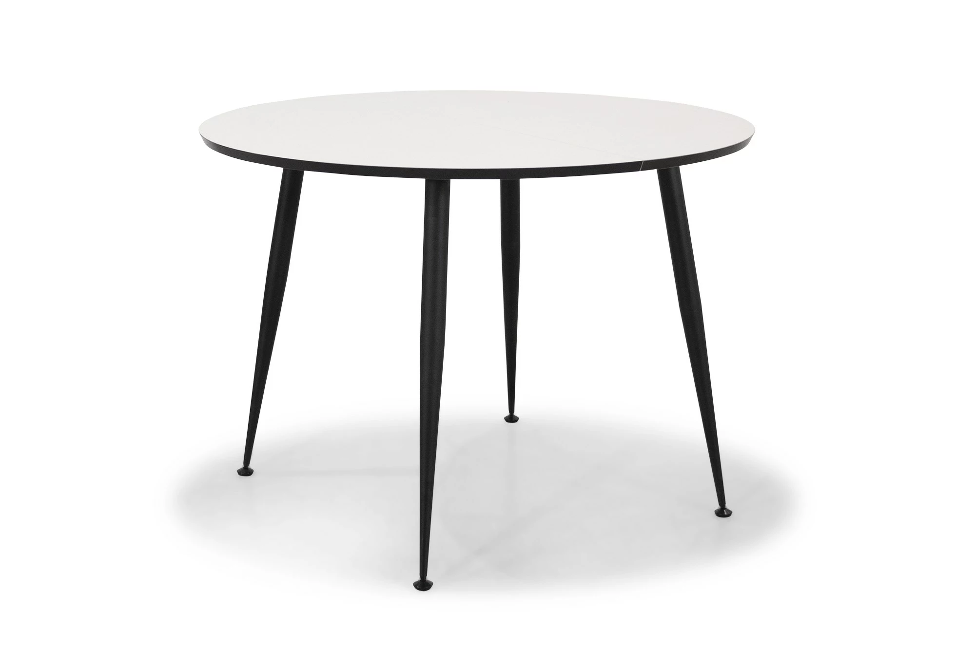 Casa spisebord med udtræk er et flot og praktisk rundt spisebord i hvid melamin m. sort kant og sortlakerede metalben. Der er mulighed for at lægge én tillægsplade i. Denne kan tilkøbes her. Bordet måler 71 cm i højden, 100 cm i dybden og 100 cm i længden
