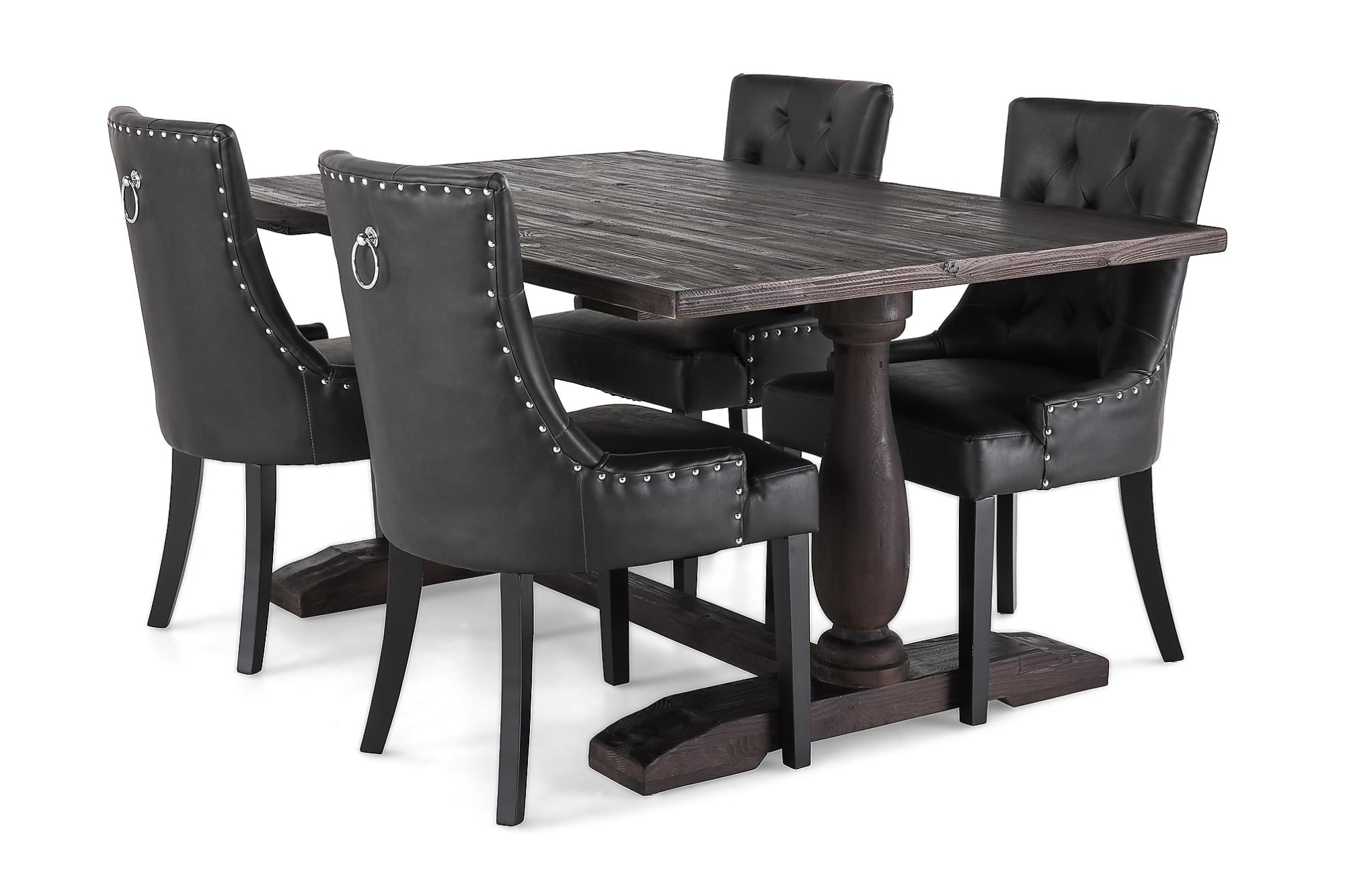 Dijon Spisebordssæt M. 4 Tuva Stole (Sort Kunstlæder), Brun