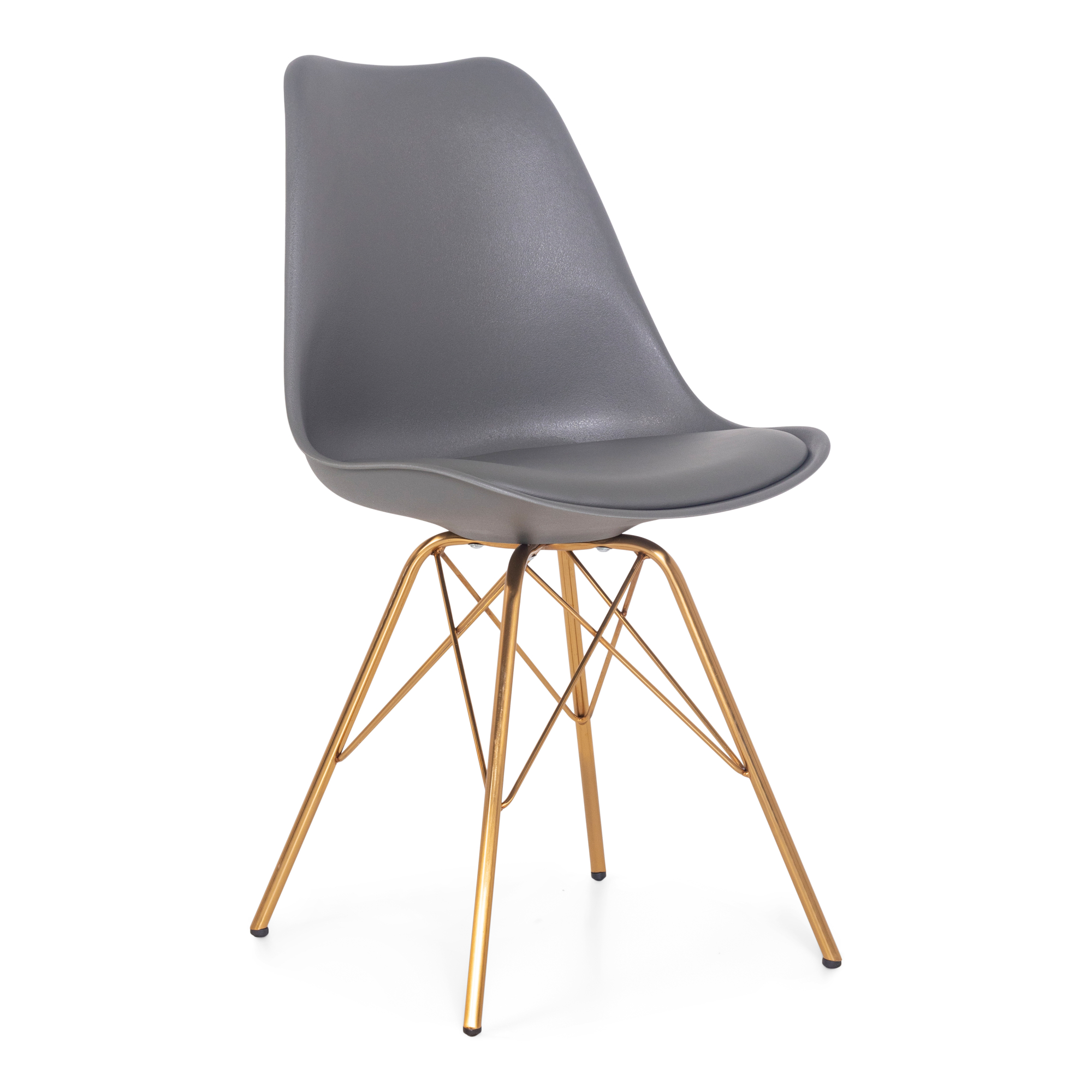Enkel og elegant spisestuestol i grå plast med et messingfarvet metalstel. Stolen har desuden en rigtig god siddekomfort grundet det bløde sæde. Stolen måler 86 cm i højden, 48 cm i dybden og 55,5 cm i længden. Falun stolen kan fås i flere farver. Se dem