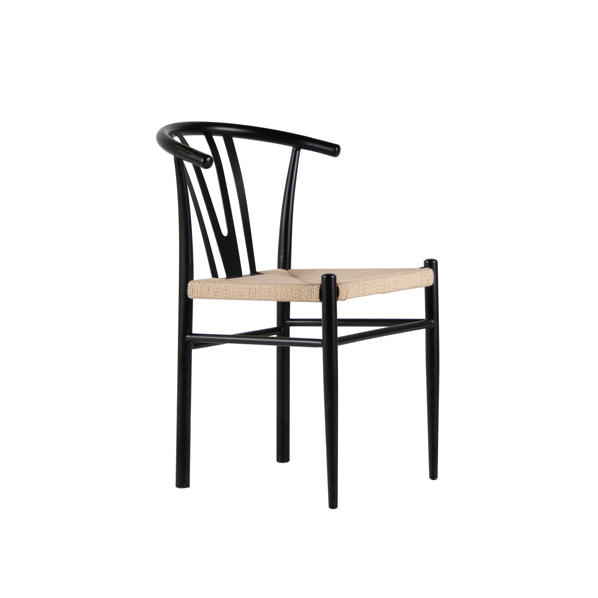 Flow Spisesbordsstol, Naturfarvet Flet Og Sort Metalstel