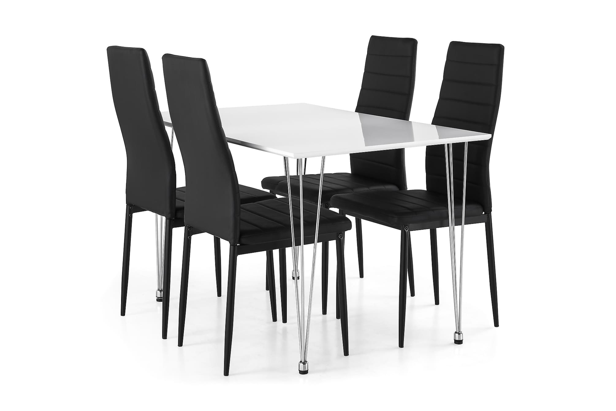 Kronblom Spisebordssæt M. 4 Ted Stole (Sort Kunstlæder), Hvid