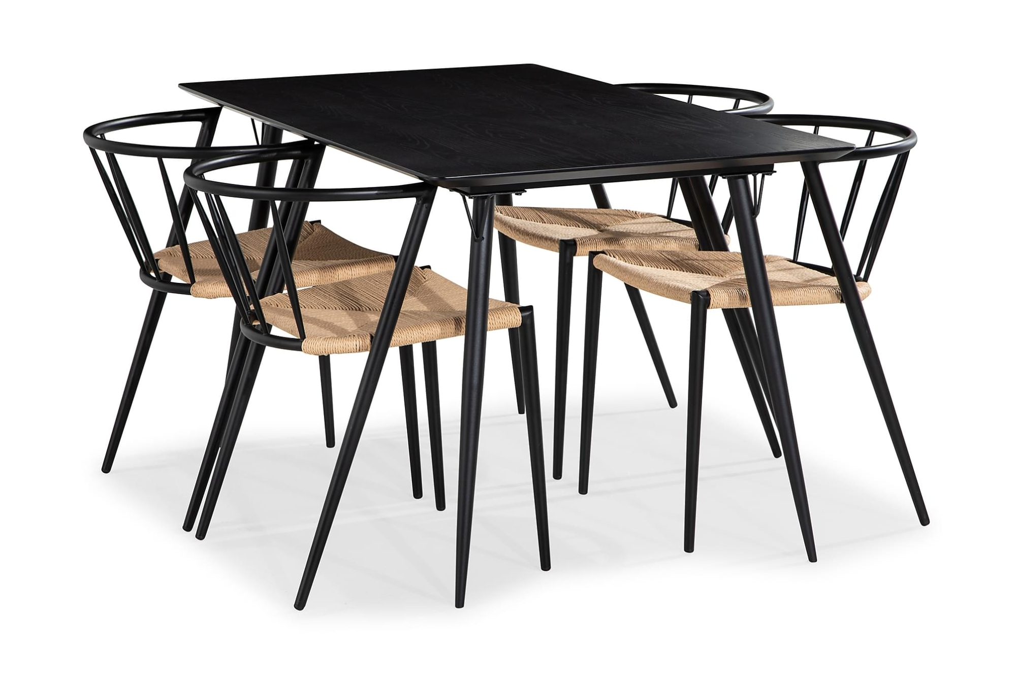 Lilo er et moderne og elegant spisebordssæt med et aflangt spisebord og fire tilhørende spisebordsstole. Spisebordet har et robust metalstel og en bordplade som består af MDF, og dermed er nem at tørre af og vedligeholde. Spisebordet har en længde på 140