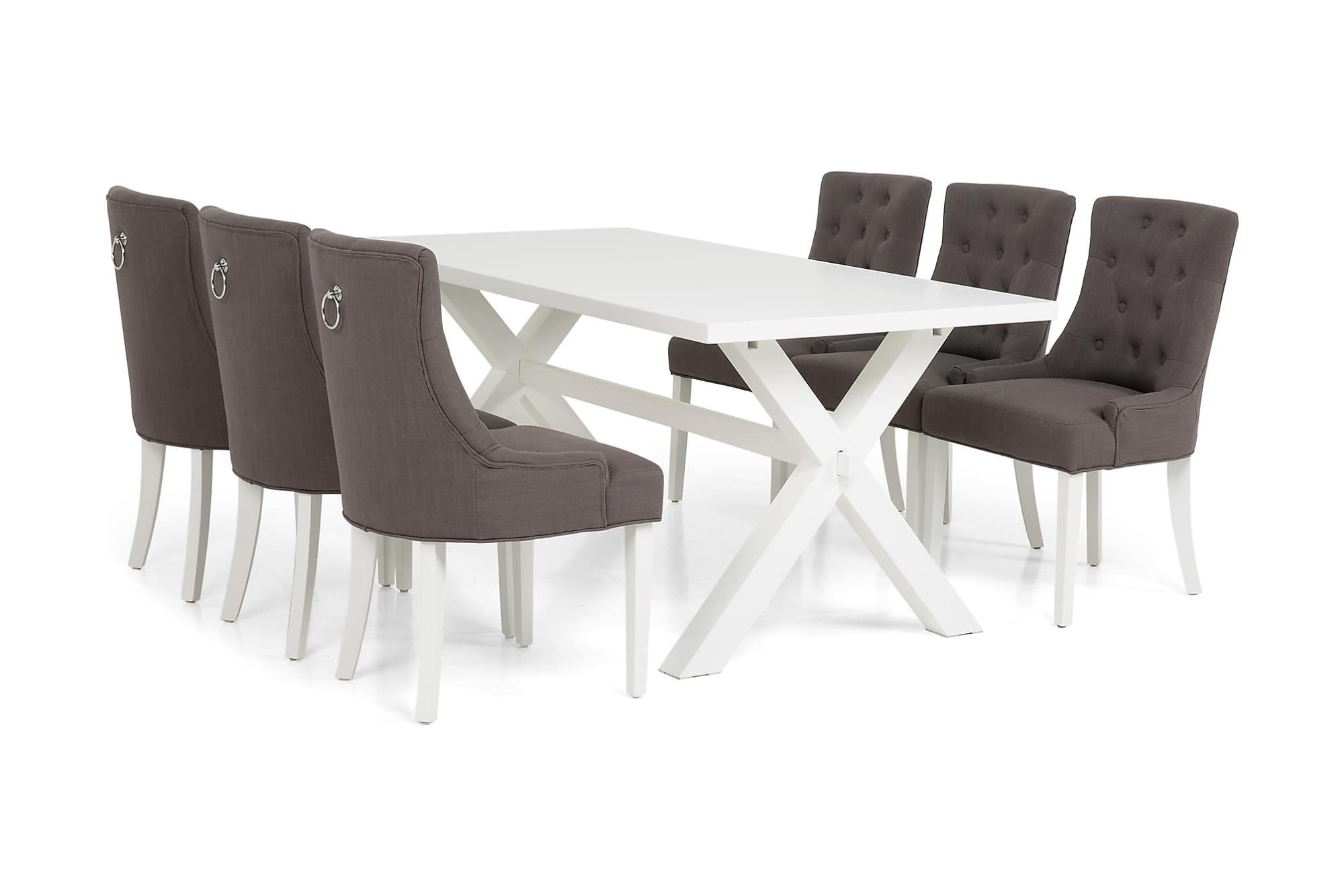 Linnea Spisebordssæt M. 6 Viktoria Spisebordsstole (Grå), Hvid
