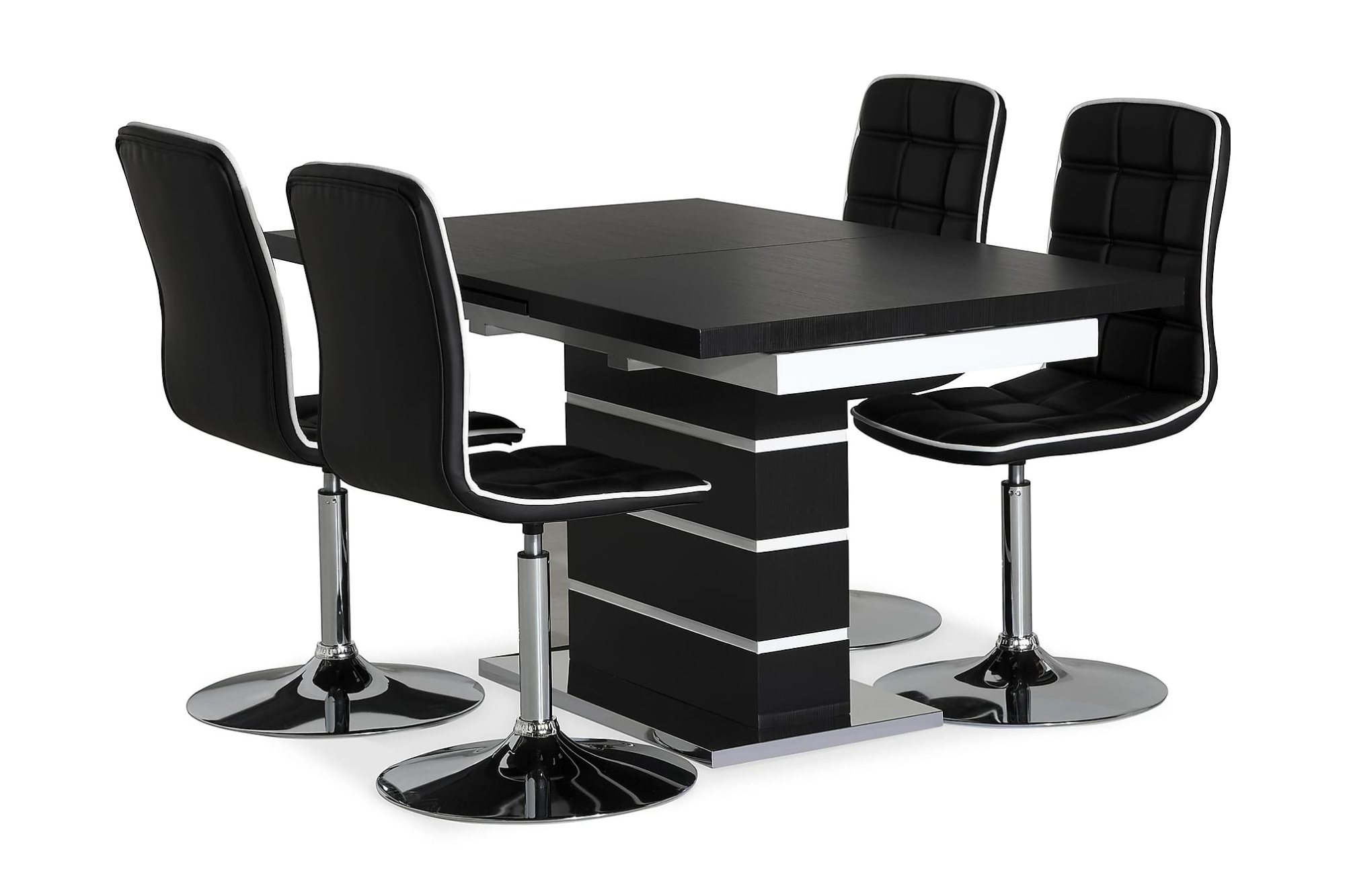Macahan Spisebordssæt M. 4 Frida Stole (Sort Pu), Sort