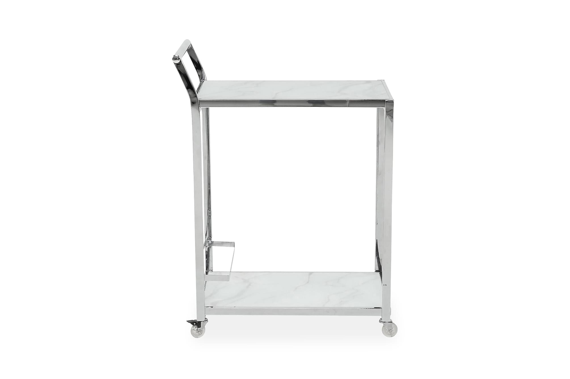 Nelly konsolbord i elegant minimalistisk stil. Bordet har en bordplade i marmormønstret glas og et klassisk metalstel, en tidsløs og smuk kombination. Sofabordet har et let design som gør, at bordet passer både til store og små rum. Se alle vores konsolbo