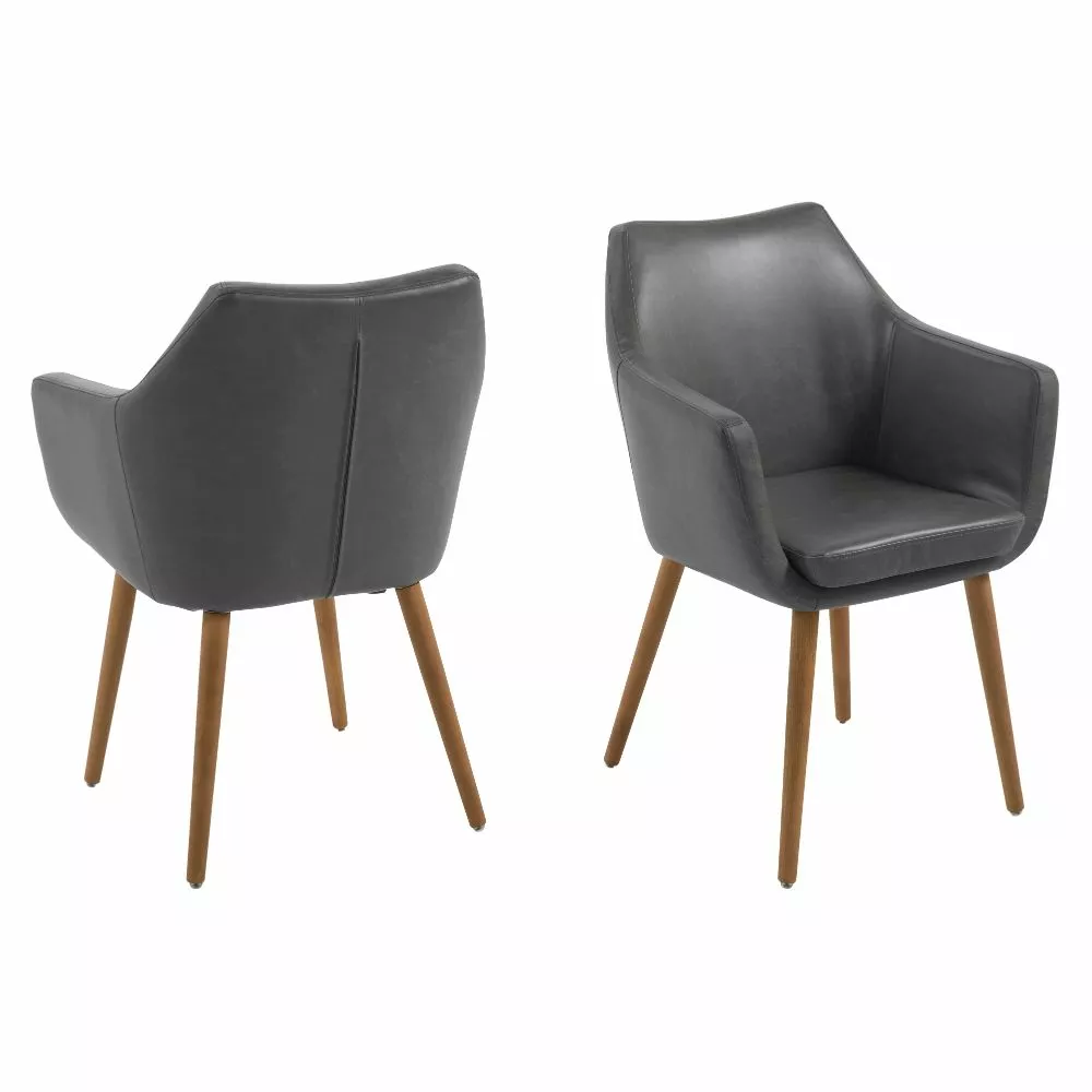 Nora stolen i lysegrå tekstillæder på oliebehandlede egetræ, har et let design og kan bruge som hjørne stol eller ved et spisebord ? Men pas på, med så godt et sæde og de små armlæn kommer i til at kæmpe om siddepladserne.