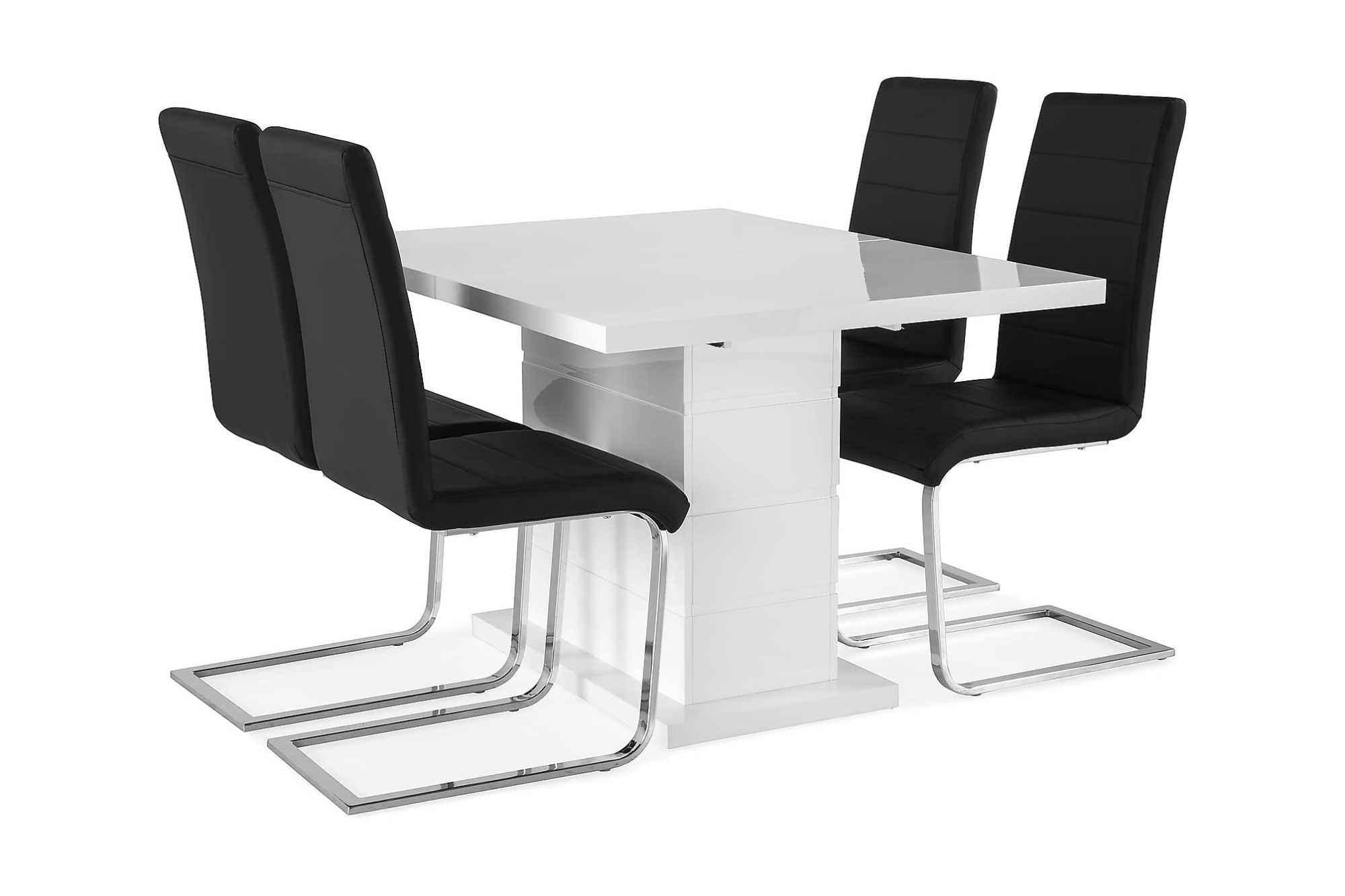 Ratliff spisebordssæt er et moderne og stilfuldt spisebordssæt, som passer ind i de fleste hjem. Takket være den praktiske tillægsplade får I plads til mange. Både bordet og stolene er utroligt nemme at vedligeholde. Ratliff er et hvidt spisebord i modern
