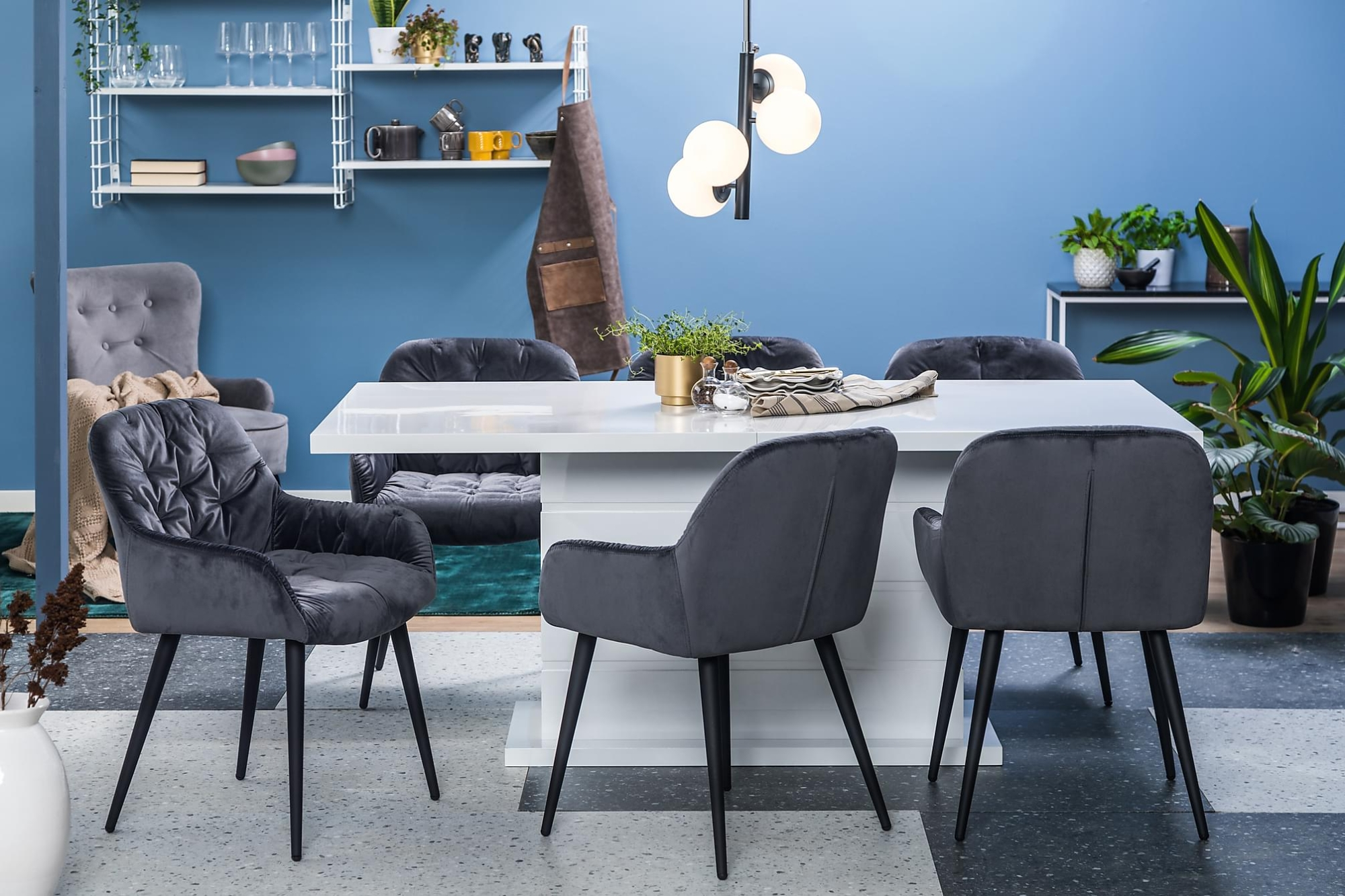 Ratliff spisebordssæt er et moderne og stilfuldt spisebordssæt, som passer ind i de fleste hjem. Takket være den praktiske tillægsplade får I plads til mange. Både bordet og stolene er utroligt nemme at vedligeholde. Ratliff er et hvidt spisebord i modern