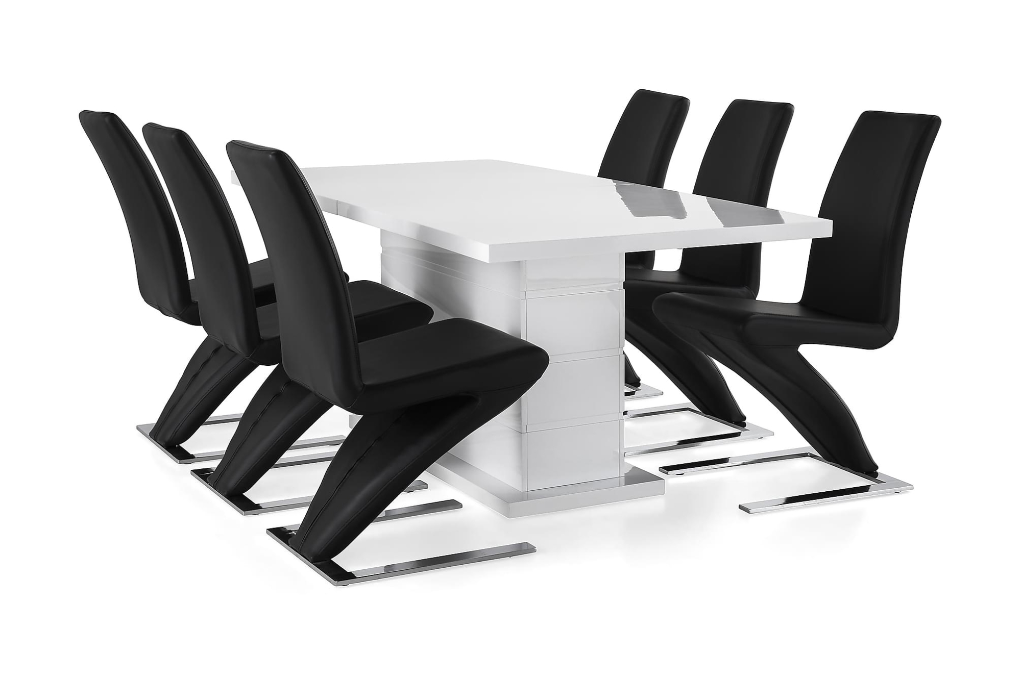 Ratliff Spisebordssæt M. 6 Zion Stole (Sort Kunstlæder), Hvid