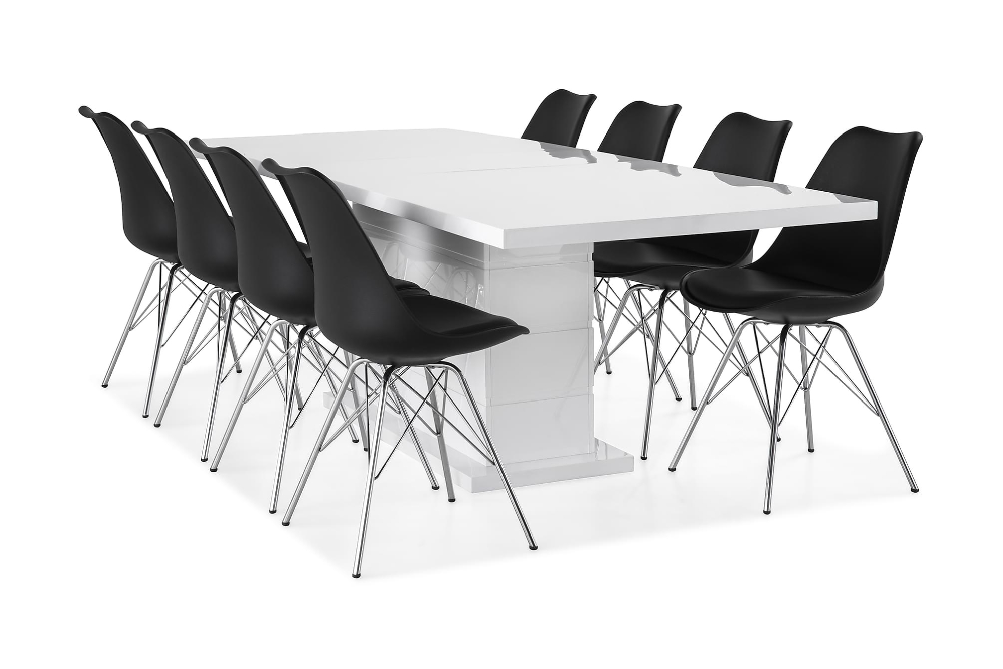 Ratliff spisebordssæt er et moderne og stilfuldt spisebordssæt, som passer ind i de fleste hjem. Både bordet og stolene er utroligt nemme at vedligeholde. Ratliff er et hvidt spisebord i moderne stil. Den blanke overflade er nem at vedligeholde, og stelle