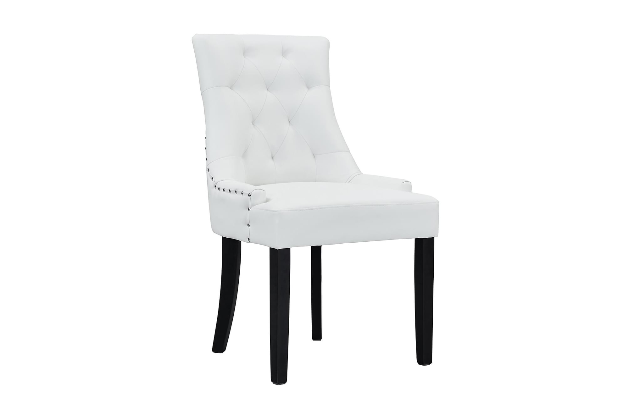 BEMÆRK, AT DENNE STOL KUN SÆLGES PARVIS OG DER SKAL DERFOR BESTILLES 2, 4 ELLER 6 STK. Tuva spisebordsstol er en robust spisebordsstol med fantastisk siddekomfort og lækker vintage karakter. Stolen er klædt i hvid kunstlæder (PU), der danner en blød og be