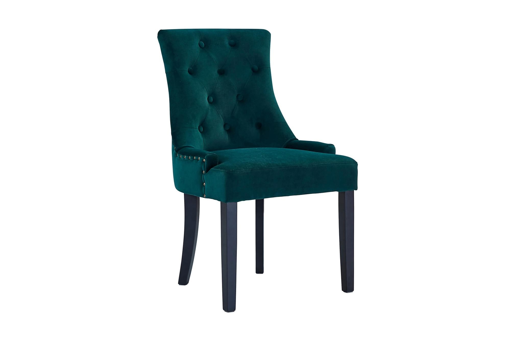 BEMÆRK, AT DENNE STOL KUN SÆLGES PARVIS OG DER SKAL DERFOR BESTILLES 2, 4 ELLER 6 STK. Viktoria er en spisebordsstol, som fanger blikke med det samme med sit iøjnefaldende design og sine eksklusive detaljer. Klassisk knappeklædt ryg i kombination med eleg