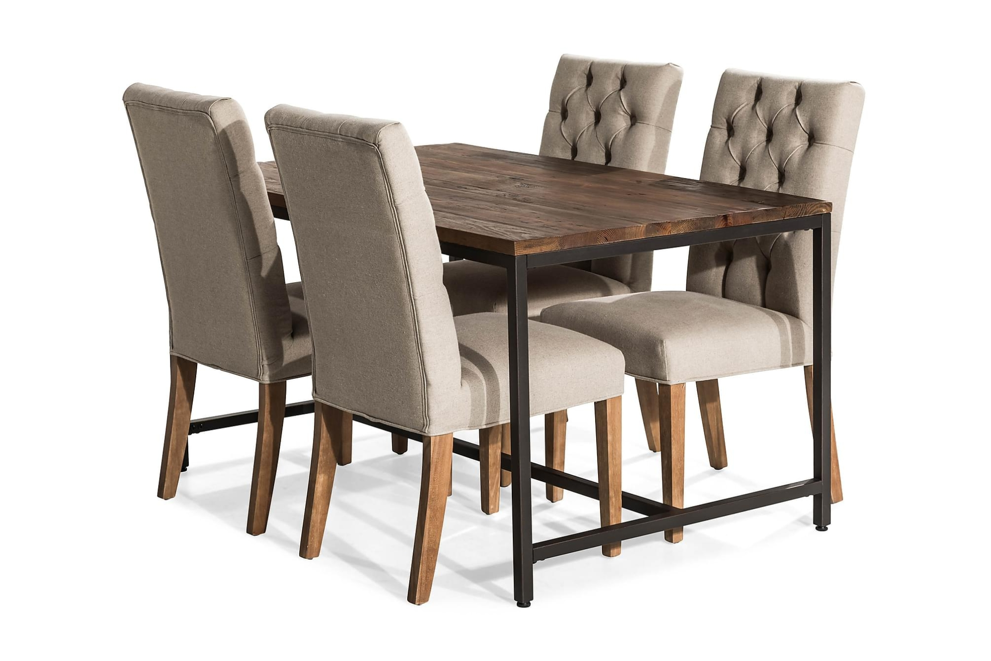 Wilmer spisebordssæt passer rigtig godt ind i det moderne og rustikke hjem. Spisebordet har et metalstel og en bordplade af voksbehandlet elm. Bordpladen er et smukt håndværk, som er fremstillet af over 100 år gamle døre og møbler, som med tiden har givet